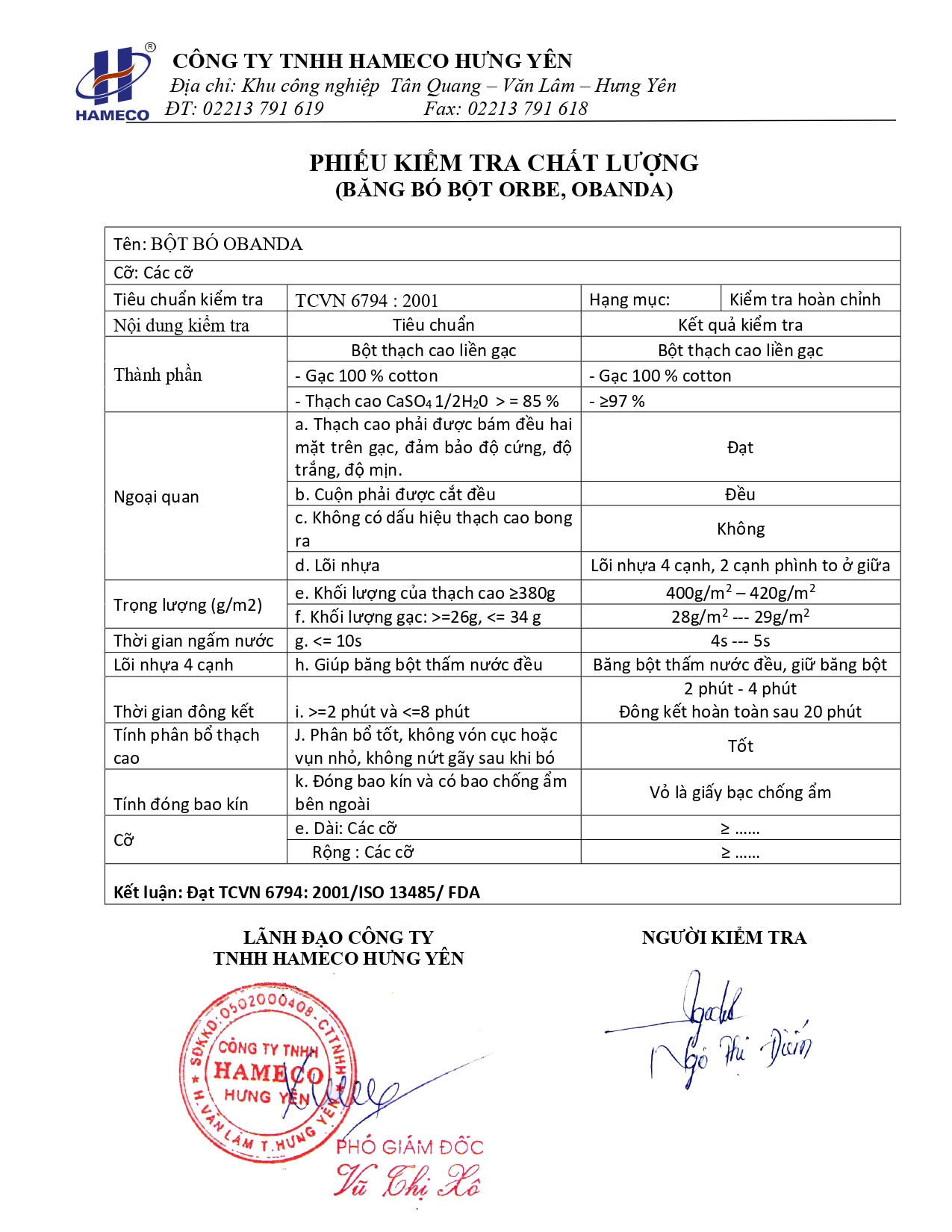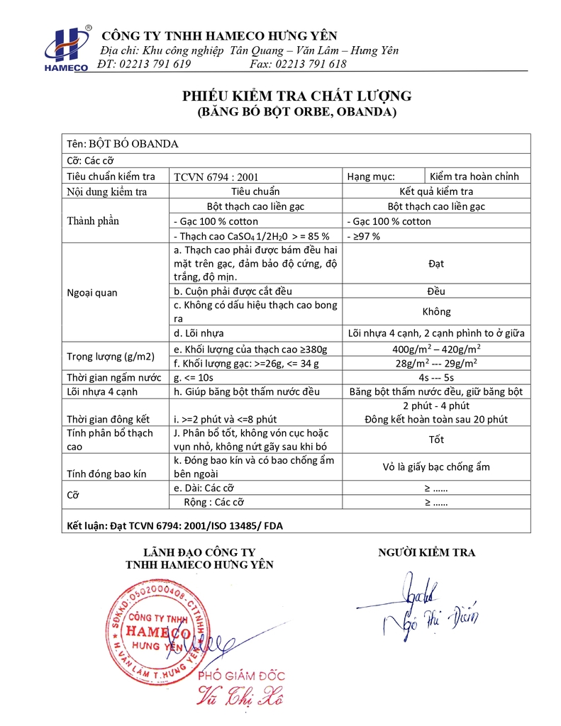 Được làm từ bột thạch cao có chất lượng tốt nhất, có độ tinh khiết cao, lớp gạc 100% cotton.