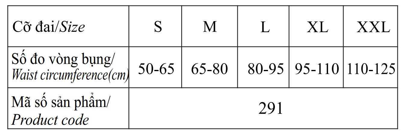 Với hệ thống thanh nẹp đàn hồi và thiết kế phía trước nhỏ gọn, tạo điều kiện cho người sử dụng có thể đeo linh hoạt hơi cao hoặc hơi thấp vùng thắt lưng. Sản phẩm có hệ thống dây kéo phụ bằng chun co giãn và dây dệt giả nylon khổ ≥ 3.8cm cùng bản nhám khổ ≥5cm x6.4cm giúp dễ thao tác và giữ chặt khi cố định.